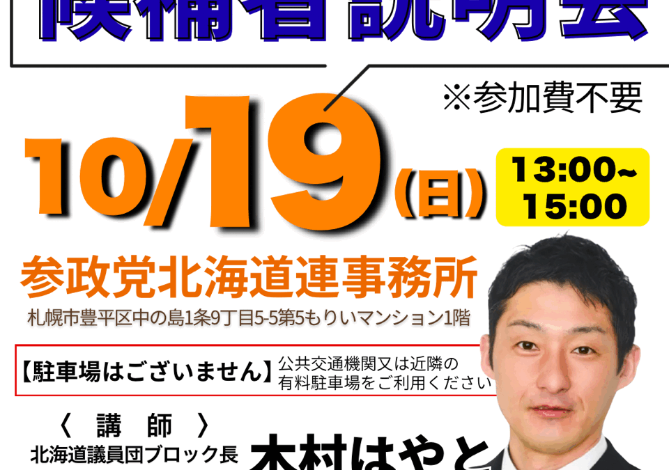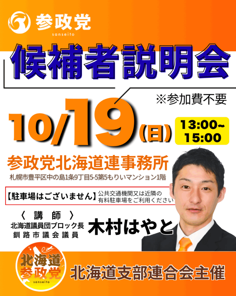 北海道の皆さま、いつも参政党へのご支援および活動へのご協力を誠にありがとうございます。