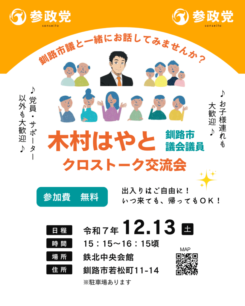 🟠 【木村はやと釧路市議会議員クロストーク交流会(市政報告会)】 開催のご案内