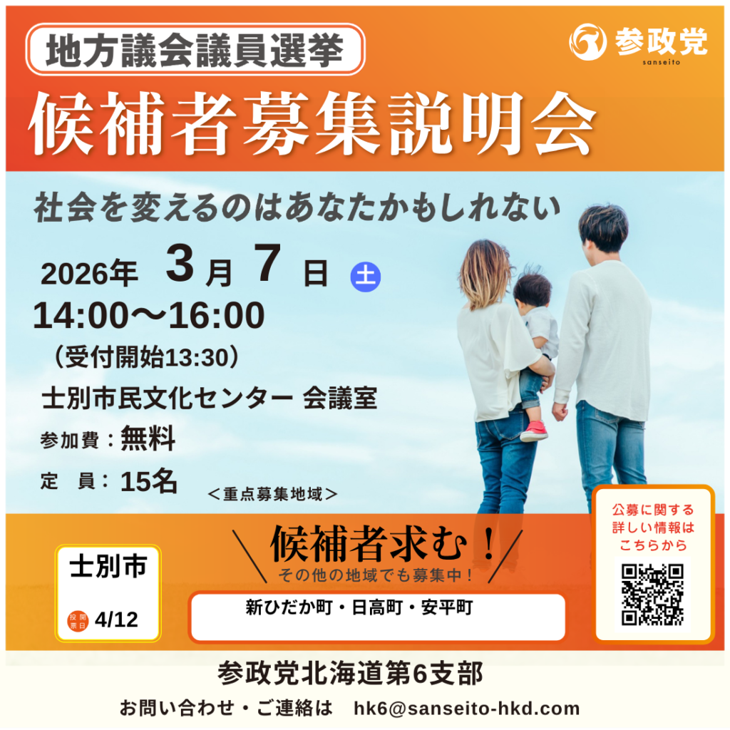 【参政党公認で国政選挙・地方選挙に立候補したい方を募集しております!】