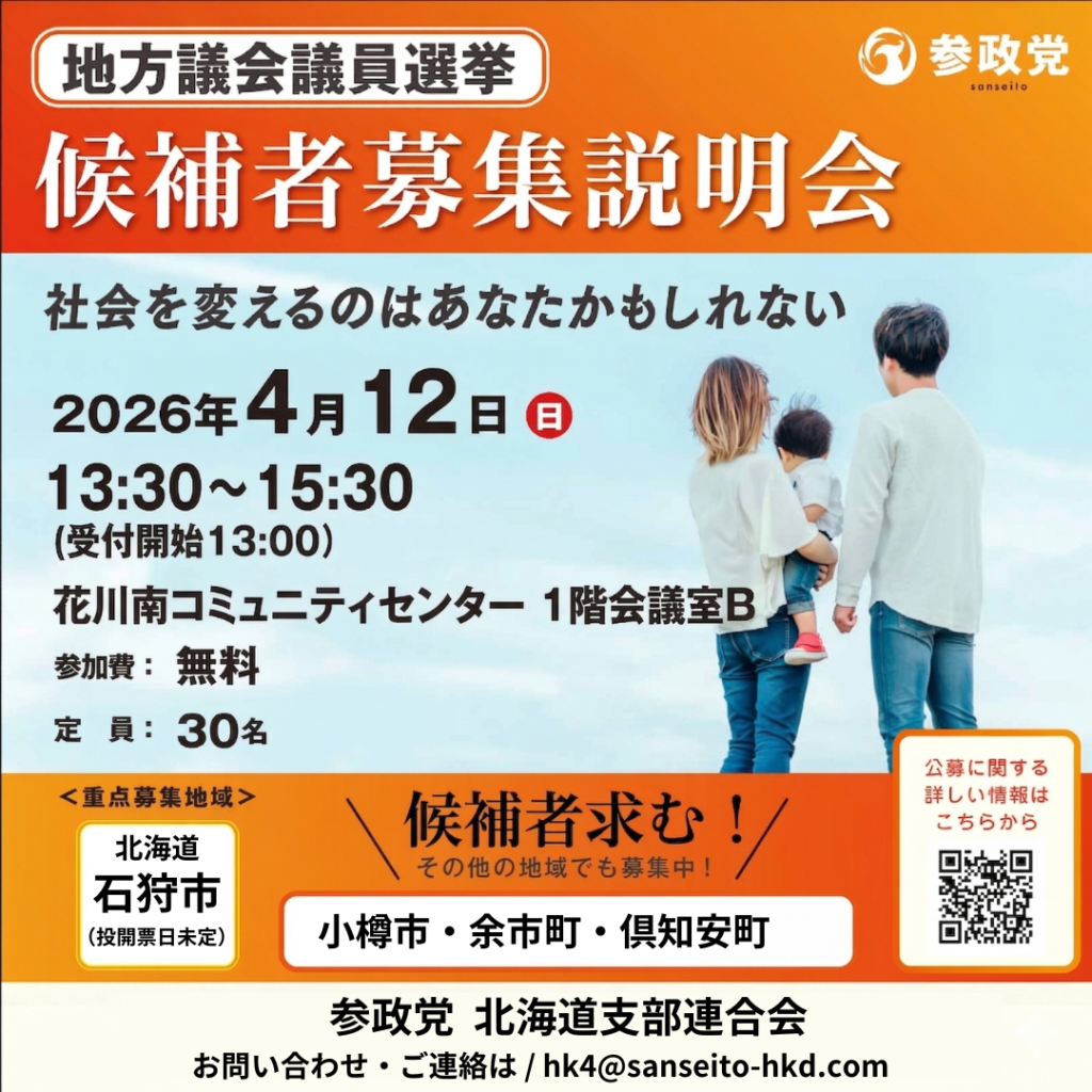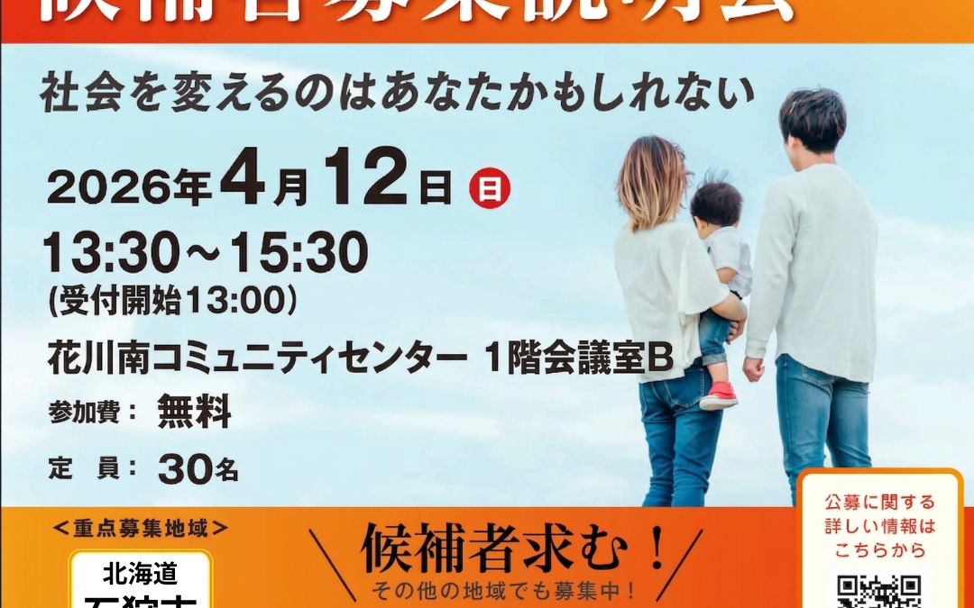 4/12(日)に石狩市にて【候補者募集説明会】を開催いたします。